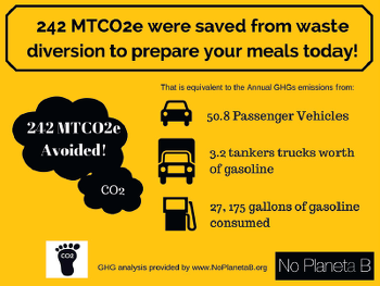 Delegates were treated to a lunch banquet with a 'rescued-food-theme' twist. Peruvian based celebrity chef, Diego Munoz, and Head Chef from Lima's 5-star Westin Hotel, Wilfred Dass, designed a lunch menu for the Forum using a selection of surplus produce saved from landfill and sourced from local farmers and suppliers. Providing the lunch under these auspices saved 242 million tonnes of CO2 emissions.